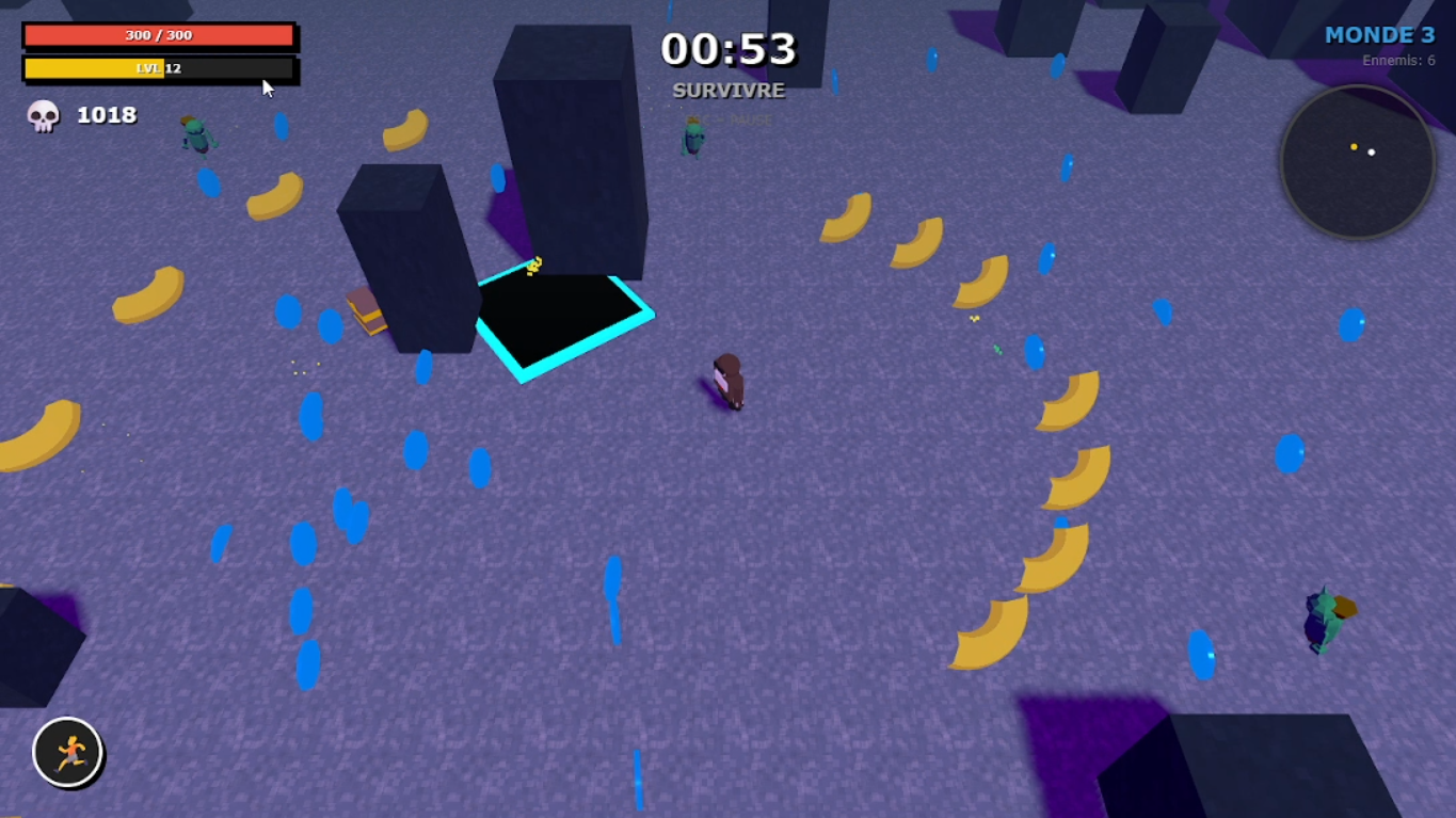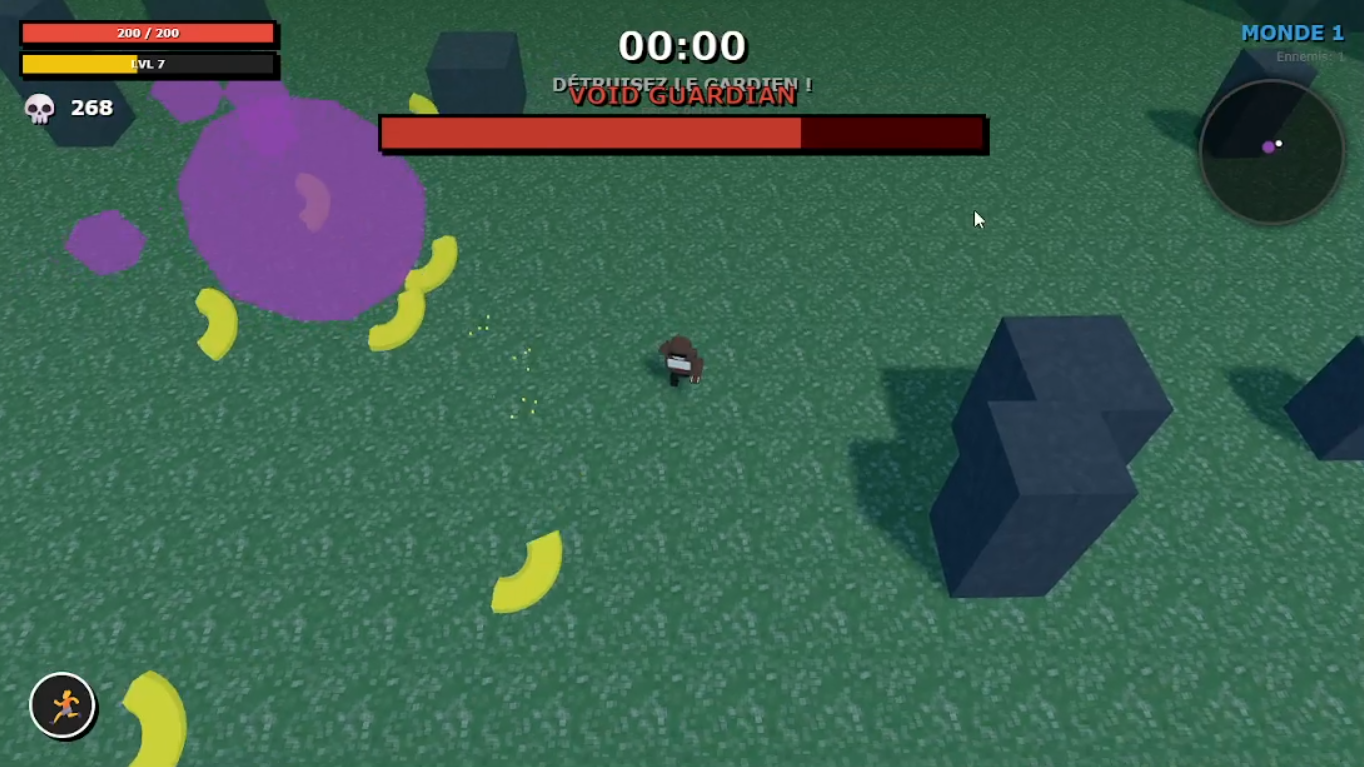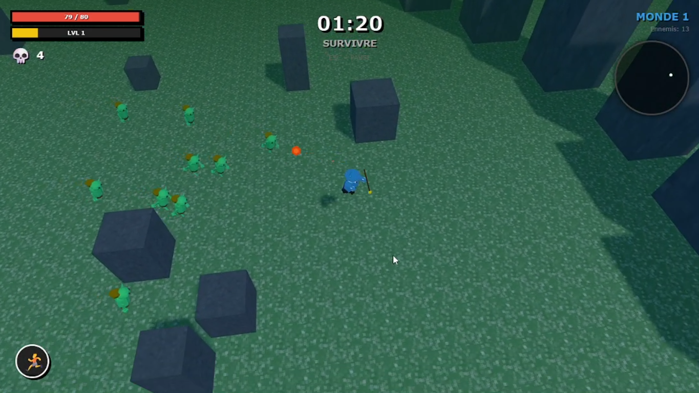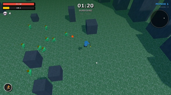 Choose your character, survive escalating enemy waves, collect upgrades, open chests, and defeat powerful bosses to progress through worlds.